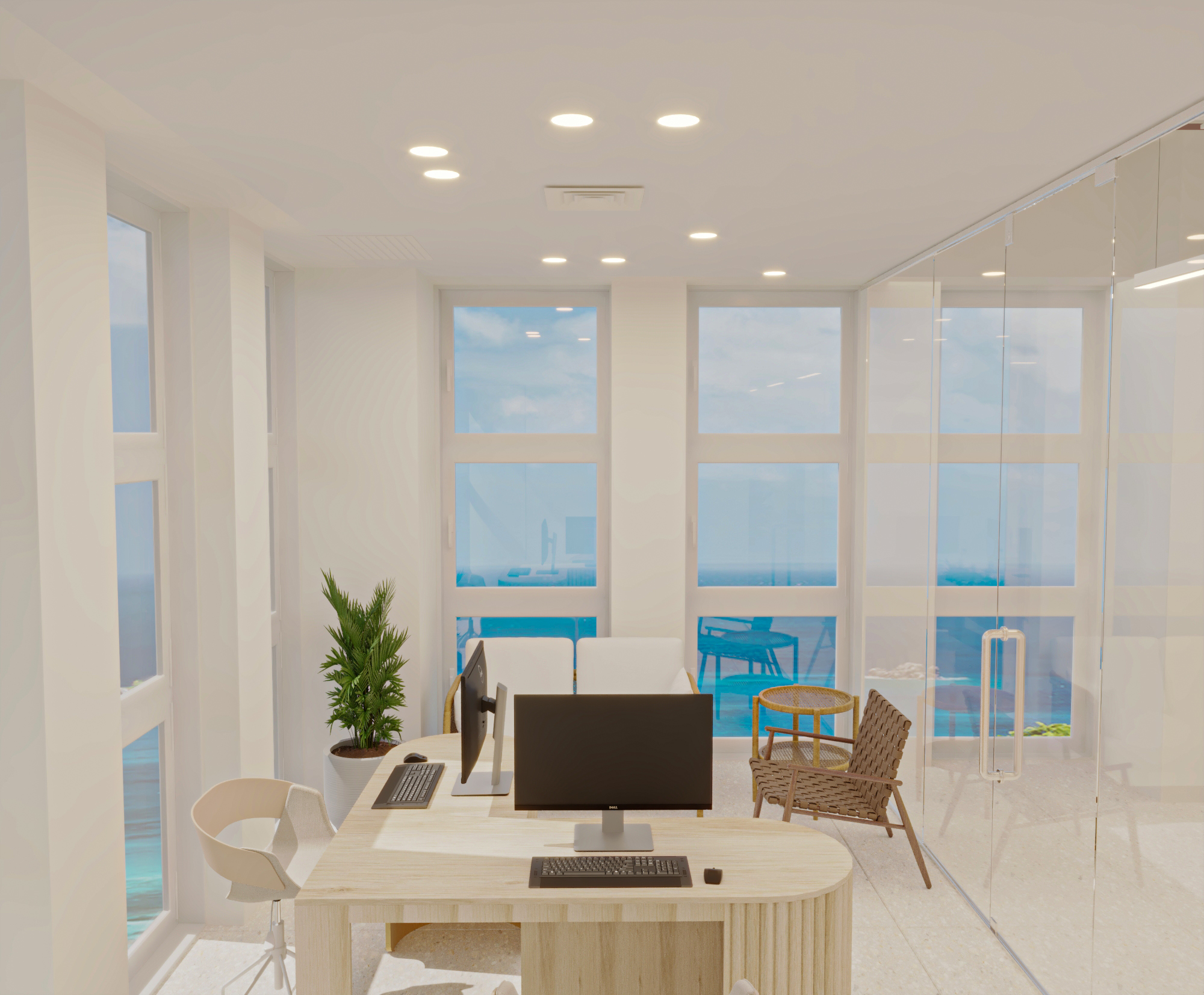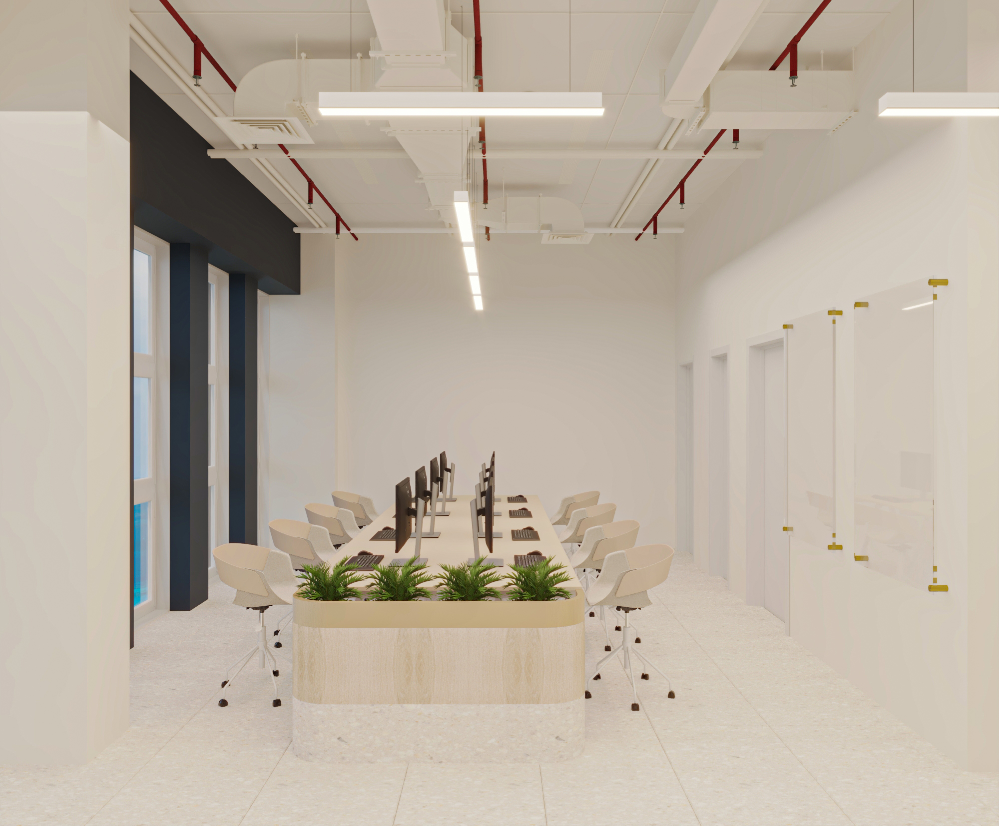 The 8.5 Advertising Agency office project stands out for one of our signature ideas: hidden storage spaces. We provided ample storage areas for the company’s numerous photography equipment and also redesigned the layout to include a multifunctional area (meeting room and photo studio), as well as a reception area, office, and shared workspace tailored to the company’s needs. The design style achieved the client’s desire for a blend between simplicity and modernity.